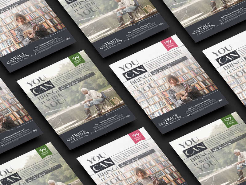 "You Can Bring it With You" is a campaign designed for Discovery Senior Living meant to communicate to their target audience the personalized possibilities available to them if they choose to move into a Discovery community. I chose to utilize bright photography to set a positive mood for the campaign as well as line work surrounding examples of personal items that individuals could bring with them into their new lives and homes at these communities.