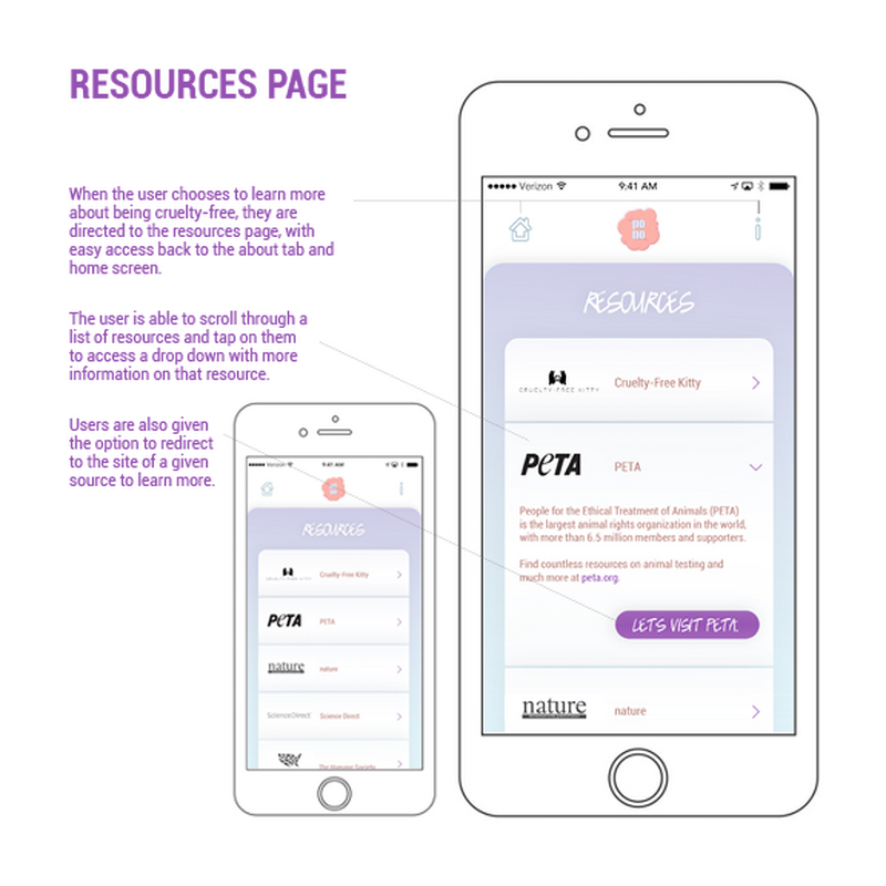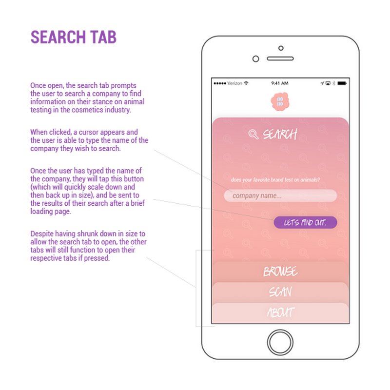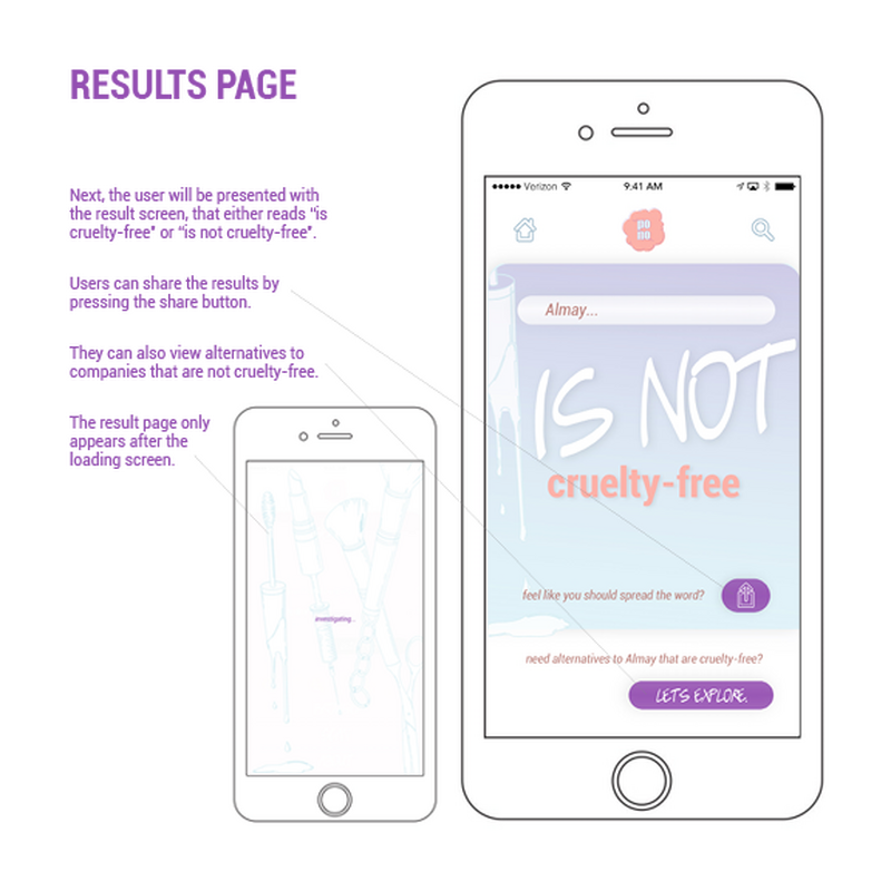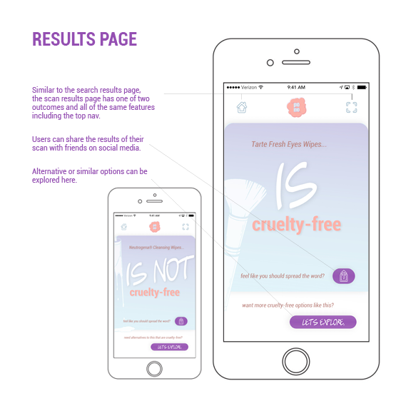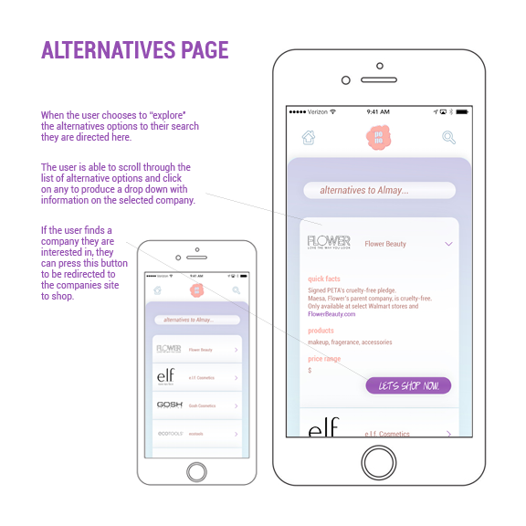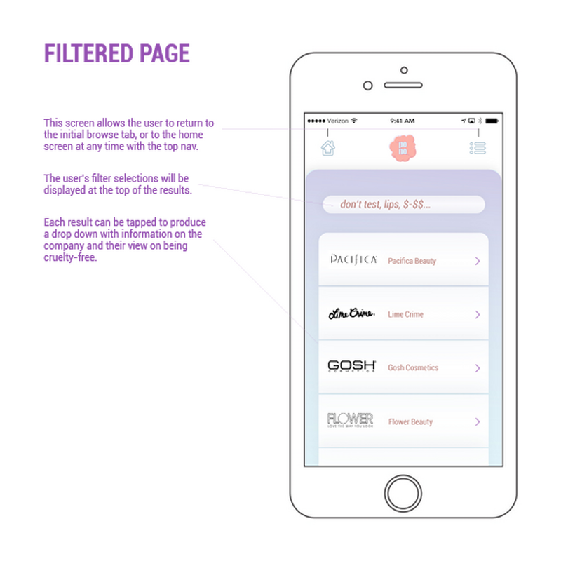 PONO is an app designed to help consumers navigate the cosmetic industry while considering the importance of shopping with companies that do not test their products on animals. When approaching the design for this project I wanted to keep it clean in a way that feels sanitary, while still having a fun and playful element.