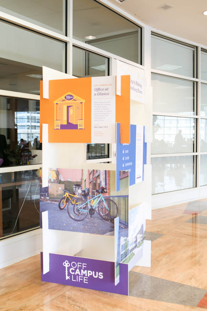 This project was meant to be a structure outside of the OCL office to advertise the office's functions and programs. I worked with photographers and other designers to create each panel within the existing brand guidelines the office has already developed.